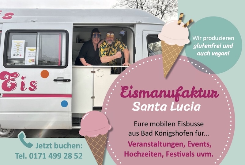 Unser original italienisches Eis beziehen wir von der Eismanufaktur Santa Lucia. Haben Sie Interesse, die Eisspezialitäten für Ihre Veranstaltung zu buchen? Dann klicken Sie einfach auf das Foto.
